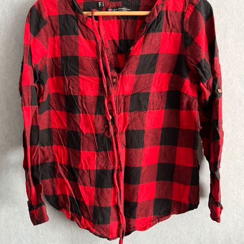 Myydään odottaville äidille punainen kauluspaita. Sivuissa vetoketjut.