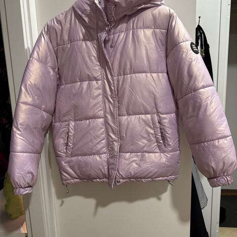 Vähällä käytöllä ollut vaaleanharmaa toppatakki. Koko 140cm. Siisti ja ehjä.