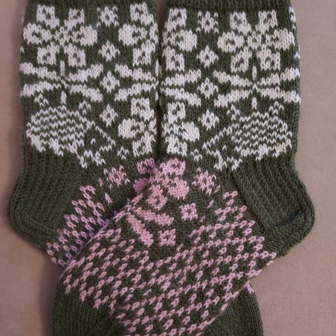 Novita Viola langasta kudotut siiliä ja särkyneitäsydämmiä villasukat varren korkeus 25senttiä jalkaterän mitta 23senttiä koko noin 37/38