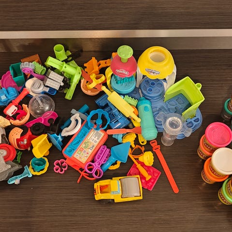 Play-Dohin muotteja, kana ja jäätelökone. Muovailuvahat ei ole play-dohia.