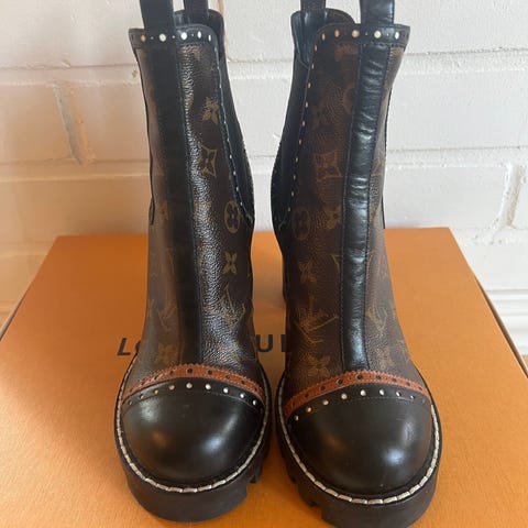 Ikooniset LV bootsit. Ostettu Vestiairistä. Myyn koska korko hieman liian korkea minulle. Kulkee välillä Helsinki Kouvola sovitusti.