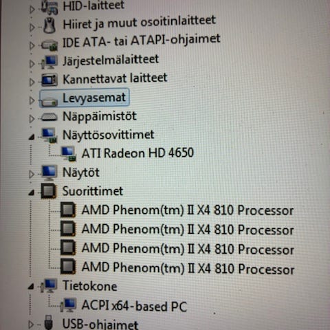 Myydään pöytäkone HP-Compaq dx2200 MT. Prosessori on Intel Pentium 2.8 GHz (2 CPUs). RAM-muistia on noin 1 Gt ja kiintolevy (HDD) on noin 75 Gt:n kokoinen. Äänet kuuluvat sisäänrakennetusta kaiuttimesta. ATI-näytönohjain antaa resoluution 1920*1080 eli full HD. Verkkokorttikin toimii, mutta en ole päästänyt konetta verkkoon muutoin kuin ennen Windowsia, kun asensin koneeseen Linuxin. Emolevyllä on kaksi SATA-liitäntää, joista toinen on vielä käyttämättä. CD-asema on ja se toimii. Käyttöjärjestelmä on Windows XP (UK). COM-portti löytyy koneen takaa, joten vaikkapa vanhaa sorvia voi ohjata sen kautta.