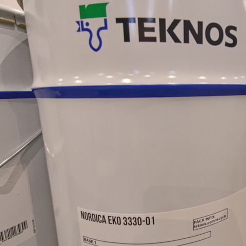 Ämpäri on vajaa, mutta yli puolet jäljellä. Sävy on kiva harmaaseen taittava vihreä. Enemmän vaalea kuin tumma. Levittyy ja peittää hyvin.