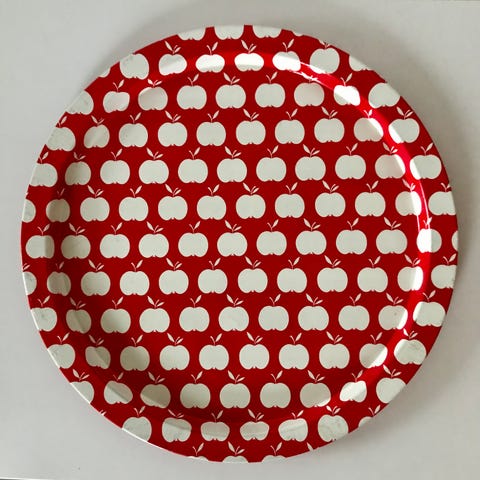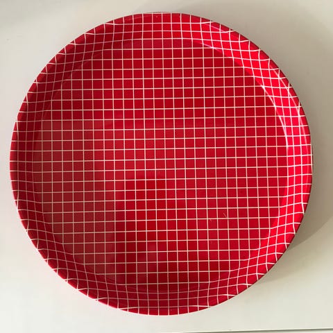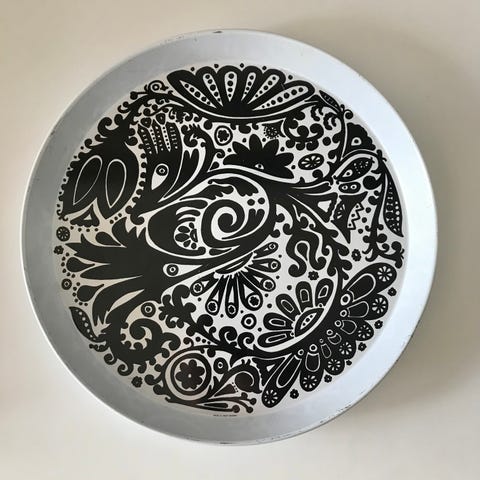 Vanha kaunis peltitarjotin, 31,5 × 41,5 cm. Iän mukaista käyttökulumaa, eli ajan patinaa, ei lommoja. Myynnissä myös muualla
