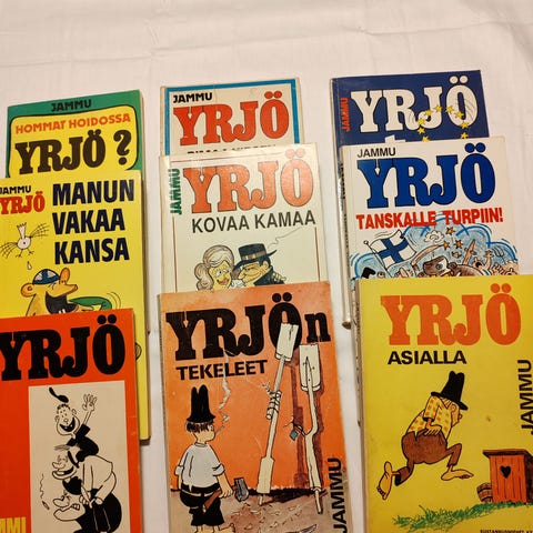 Yrjö sisältävät 2 nidettä: 'Siskoja ei jätetä!', 'Suorin vartaloin kerien' ja 'pOP - kirjojen Ahti ja kumppanit'. Kirjat ovat suomenkielisiä ja sisältävät humoristisia vitsejä aikuiseen makuun eri aiheista.