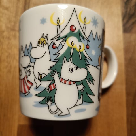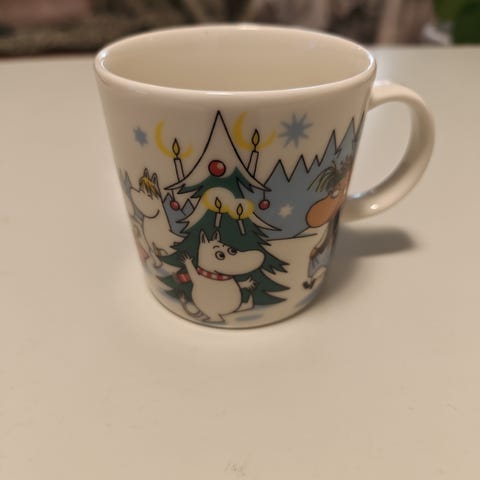 Ethän tingi kiitos. Talvimuki muumi muki Kuusen alla vuodelta 2013. Lapset myyvät käyttämättömät mukinsa, meillä ei Muumit oikein ole olleet suosiossa. Ei tarroja, mutten näe virheitäkään mukeissa. Yhteishinta kolmelle mukille. Yksittäin 35€/kpl.