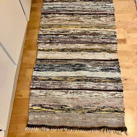 Kun maton kääntää välillä, se myös kestää kulutusta pidempään. Sileän pinnan ansiosta helppo imuroida. Konepestävä. Helppo pitää puhtaana. Materiaali 100 % puuvillaa.