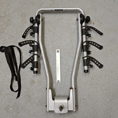 10e lisähinnasta mukaan myös MontBlanc -merkkinen pyöräteline omalla patenttikiinnityksellä (viimeinen kuva). Ei yhtä tukeva ja helppokäyttöinen kuin Thule mutta toimii.