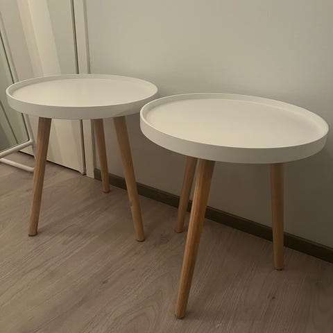 IKEAsta ostetut valkoiset yöpöydiksi tai sivupöydiksi sopivat pöydät, 2 kpl. Erittäin hyvässä kunnossa ja olleet vähällä käytöllä. Molemmat pöydät yhteensä 20€.