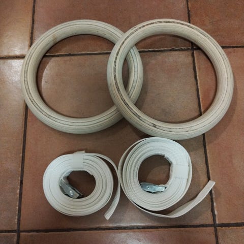 Myydään käytetyt Suomen Voimistelutuotteen voimistelurenkaat. Isompi malli.