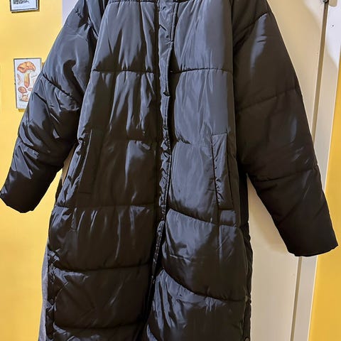 Muutaman kerran käytetty Elloksen paksu toppatakki. Tarkenee kylmemmilläkin pakkasilla! Useita vetoketjutaskuja.
