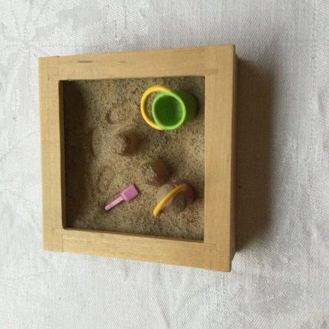 Kuvissa näkyvä Lundby valkoinen takka, punaisella joulusukalla. Vihreä havuköynnös on kiinnitetty kuumaliimalla takan päälle.