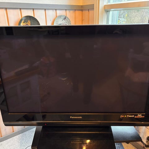 Noin 10v sitten ostettu täysin toimiva telkku uuden tieltä pois. Jalkaan ruuvit hukassa, pitäisi M5 koko käydä.
