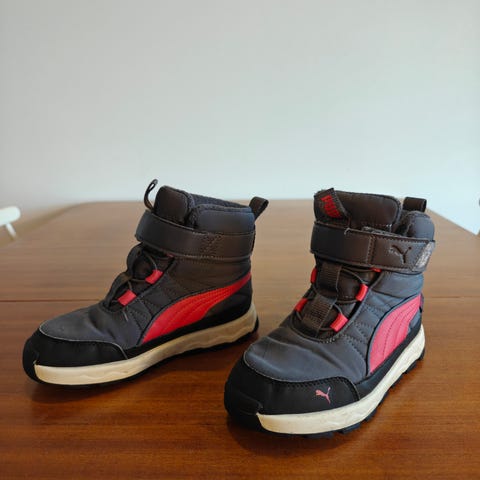 Puma Evolve malliston lasten talvikengät, jotka on varustettu dynaamisella ja aktiivisella päällisellä. Hyvän istuvuuden takaamiseksi niissä on sekä joustavat nauhat ja tarranauhakiinnitys. Saappaassa on kestävä kumipohja.