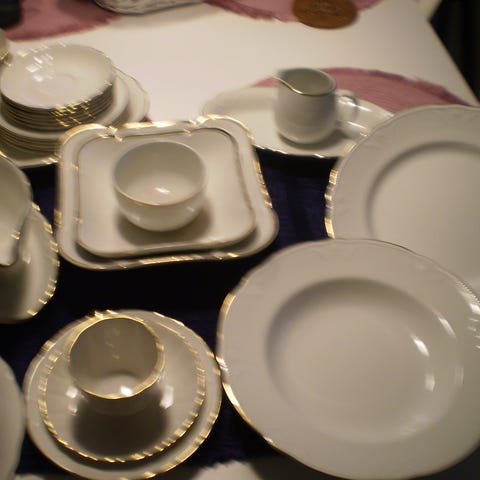 Arabia astiasto sini-kulta-raita. Koko astiasto 200 e. Vain haku.