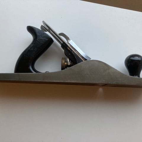 Stanley käsihöylä, jossa on puukahva ja metallirunko. Työkalu on tarkoitettu puun höyläämiseen ja muotoiluun.urapohjainen.