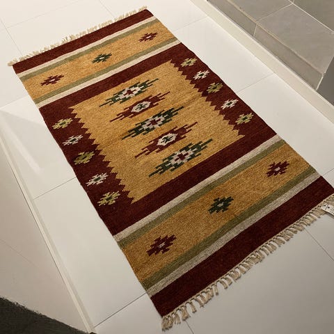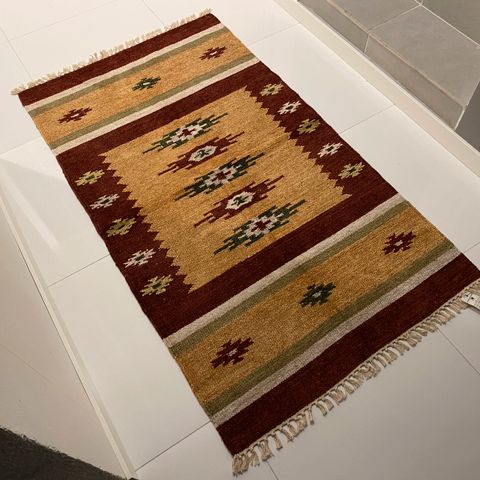 Myydään käsinkudottu chenille dhurrie-matto, joka sopii monenlaiseen sisustukseen. Matossa on kaunis, perinteinen kuviointi maanläheisissä sävyissä, kuten ruskeassa, beigessä ja keltaisessa. Pohja väri harmaa. Matto on kudottu chenille-langalla. Päädyissä on hapsut. Kestävä ja lämmin sekä mukavan tuntuinen jalkojen alla.