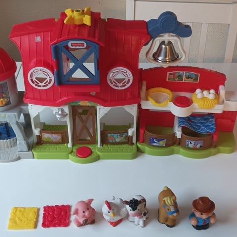 Myydään fisher price maatila. Mukaan kolme eläintä. Äänet ei kuulu tällä hetkellä, epäilen patterin loppuneen.