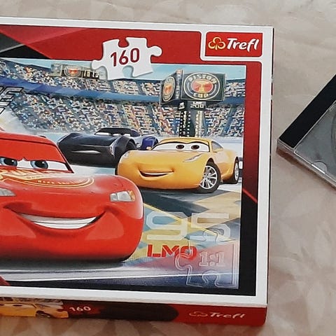 Myydään hyväkuntoinen käytetty Salama McQueen -aiheinen palapeli. 250 palaa. Kaikki palat tallella. Laatikko hyvässä kunnossa. Laadukas Clementoni-merkki; palat vahvoja ja helposti paikalleen laitettavia.