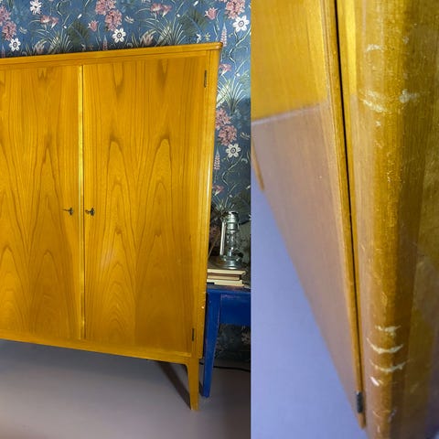 Kuvan tilava koivuinen liinavaate/vaatekaappi. Puhdas raikas ja hajuton. Avain tallella ja molemmat lukot toimii.