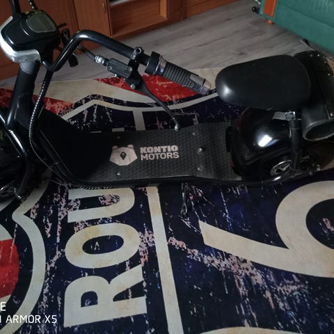 Velocifero MAD 1000 istuttava skootteri uusilla akuilla, tällä ajelee kesät talvet, akut on uudet, range ei mikään hirmuinen, mutta hyvän matkan päästelee, ajovalojen piuhoissa jotain kosketushäikkää, laitoin kirkkaan ladattavan otsalampun ja sehän on parempi kun orggisvalot. Orggisvalotkin saa varmaan noheva tee-se-itse mies toimiin.
