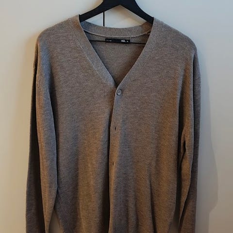 Beige hyväkuntoinen muutaman kerran pidetty kermanvalkoinen neuletakki. Lanka puuvillasekoitetta. Kainalo-kainalo 49cm, kaulasauma-helma 64,5cm, kainalo-hihansuu 43cm