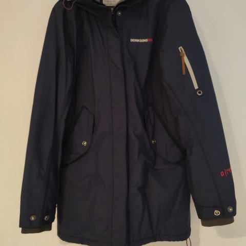Didriksonsin talviparkatakki. Selän yläosassa ja hupun sisällä lämmittävä karva, kokonaisuudessaan lämmin ja vedenpitävä talvitakki.