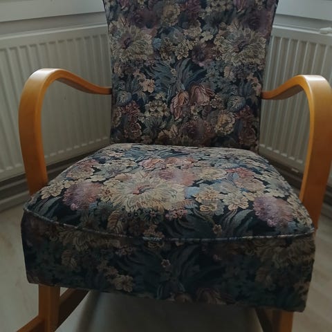 Myydään ok kuntoinen keinutuoli. Maalipinta kulunut ja toisen käsinojan liimaus irronnut. Täysin käyttökuntoinen silti.