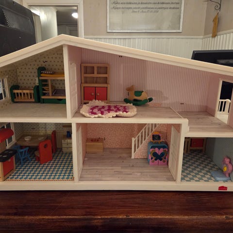 Hyväkuntoinen nukkekoti. Pari tarraa liimattu seinälle. Vain nouto. Kulkeutuu omien menojeni mukana Teuvalle tai Seinäjöelle.