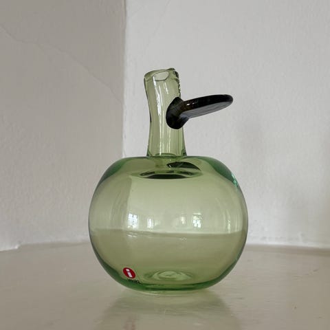 "Muotoilija Oiva Toikan mielikuvituksellisen ja värikkään Hedelmiä ja vihanneksia -taidelasisarjan jokainen lasitaide-esine saa muotonsa yksitellen Iittalan lasitehtaalla käsityönä ja suupuhaltamalla."
