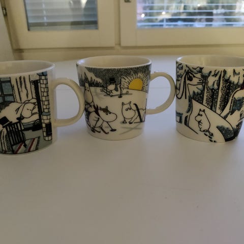 Hento lumisade, Hiihtäen kera herra Virkkunen ja Vuorilla muumimuki. Kaikissa laput paikoillaan. Postitan hyvin pakattuna 10,90 e postimaksulla tai nouto Naarajärveltä. Kts. Myös muut myynnissä olevat muumimukit. Hinta kaikille kolmelle muumimukille yhteensä.