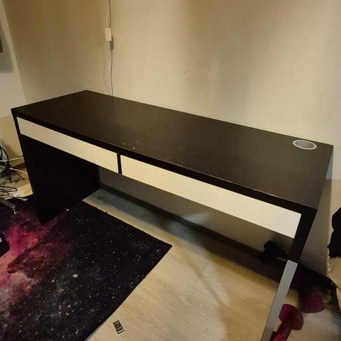 Myydään muuton tieltä aikanaan käytettynä ostettu Ikean työpöytä. Kansilevy lepää laatikoston päällä. Kannessa pientä kulumaa, yleisilme kuitenkin siisti.