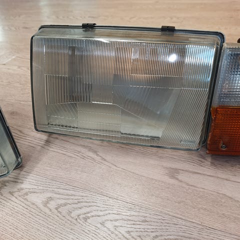 Volvo ajovalot, käytettyjä, sisältävät kaksi valoyksikköä. Valot ovat mustalla rungolla ja kirkkailla linssielementeillä. Sopivat auton etuosaan valaisemaan tietä pimeässä.