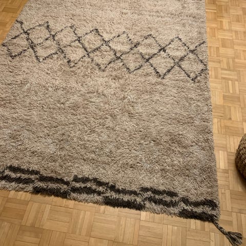 Vekestä ostettu valkoinen villamatto. Mallin nimi on Piano, ei ole enää myynnissä. Kahvitahra jäänyt yhteen kulmaan, en ole kokeillut esim. tekstiilipesuria. Muuten hyväkuntoinen. Ohutta villaa, mahtuu hyvin myös esim. ovien alle.