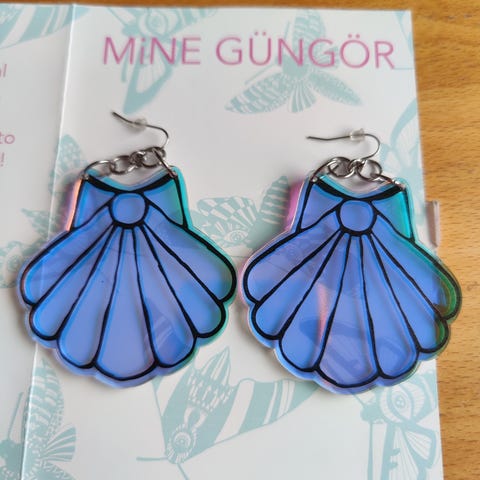 Mine güngör merkkiset unicorn tears mini drop. Materiaali hologrammiakryyli, väri vaihtelee kauniisti riippuen mistä suunnasta valo osuu koruun. Omassa taustapahvissaan.