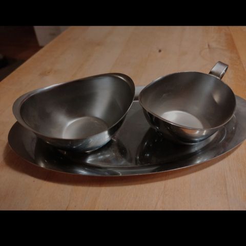 Vähän käytetyt Retrot Kermanekka ja Sokerikooli Aluslautasella.