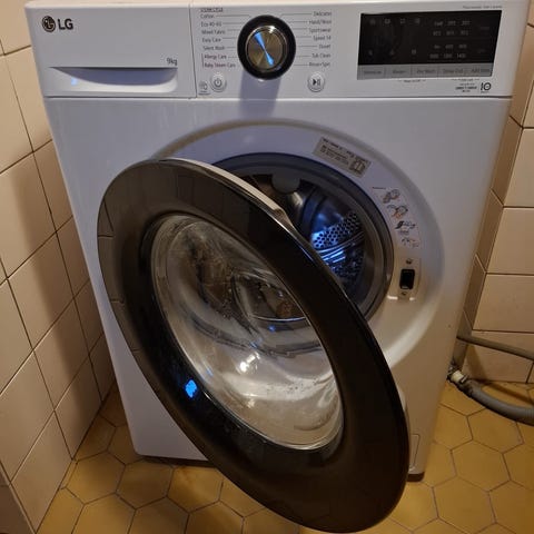 Kone on otettu toimivana irti. Joillain pesuohjelmilla pitää outoa ääntä.