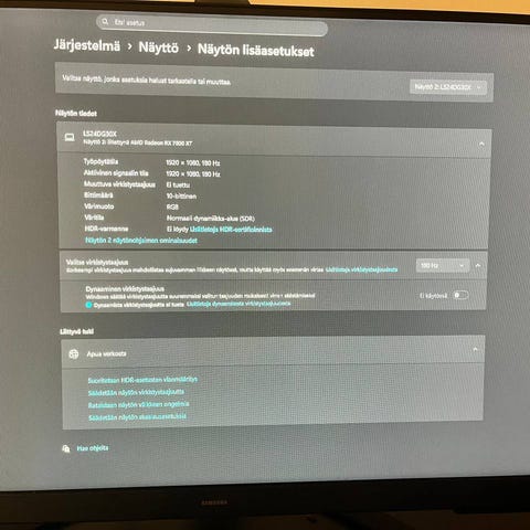• Adaptive Sync (FreeSync / G-Sync Compatible) – vähemmän kuvan repeilyä