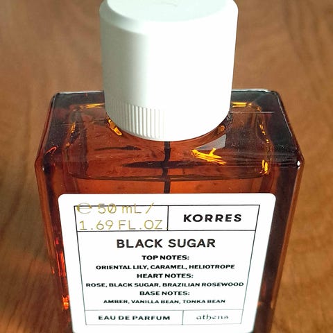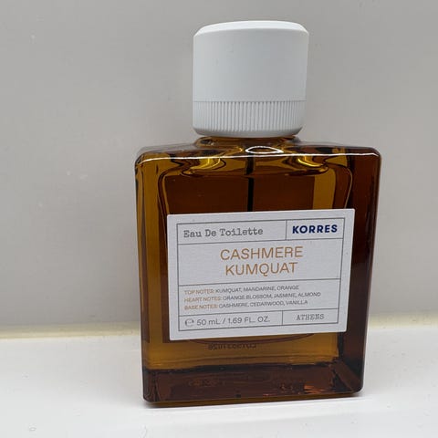 Korres Eau de Toilette Avgoustos, 50 ml pullo. Tuoksu on vähän käytetty, ostettu talvella 24-25, säilytetty pimeässä ja viileässä. Takaosan paperi ottanut vähän väriä itseensä, ilmeisesti meikkivoiteesta.