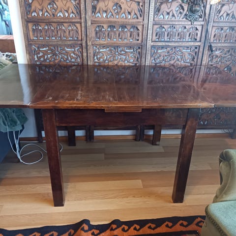 Myydään 70-luvun retro puinen ruokapöytä. Väri oranssi. Käytön jälkiä löytyy, mutta tämän voi vaikka maalata mieleisekseen. Nyt jalat ovat irrotettuna, koska varastossa säilössä. Mutta näppärä pieni ja siro pöytä. Nouto.
