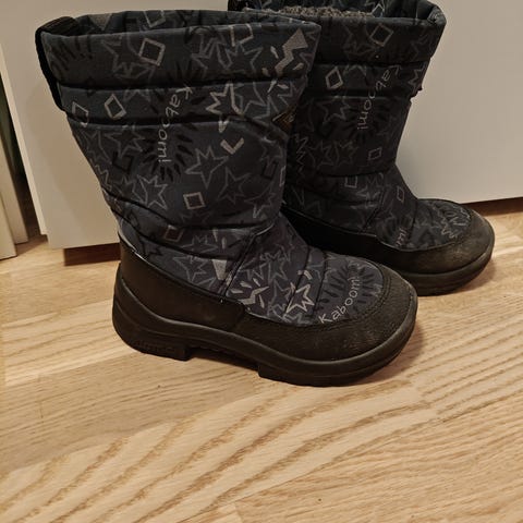 Kuoma lasten kengät koko 30, unisex-malli. Väri musta/kuviollinen (heijastava). Lämpimät talvisaappaat talven rientoihin.