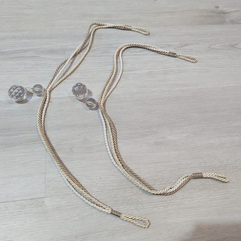 Sivuverholle nyöripidike/ köysipidike 2kpl, päissä lenkit seinäkoukkua varten.