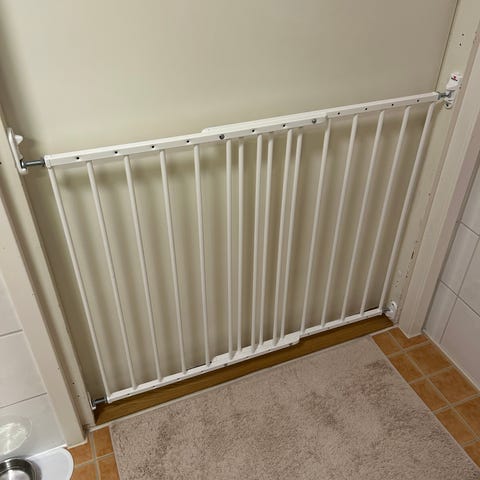 Koiraportti / lapsiportti säädettävillä reunoilla ja avattavalla salvalla. Leveys 89cm, korkeus 77 cm.