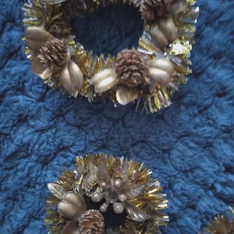 Myydään jouluinen, kranssinmuotoinen tuikkukynttilälle sopiva koriste.