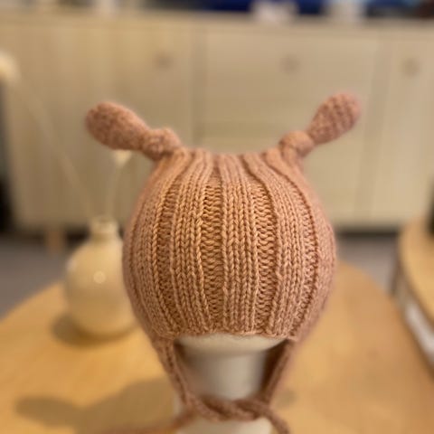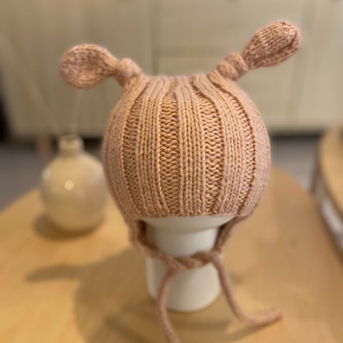 Itse neulottu pipo. Lankana Drops Baby Merino ja Drops Kid Silk. Ympärysmitta n. 65 cm venyttämättä.