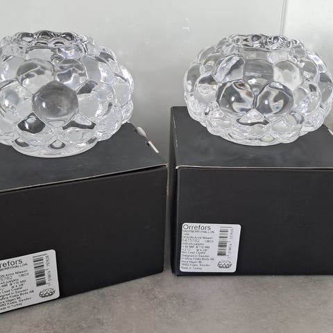 Orrefors kynttilänjalka/kynttelikkö valmistettu kirkkaasta lasista. Kynttilänjalassa on neljä eri korkuista osaa kynttilöille.