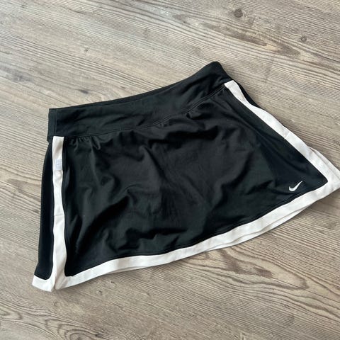 Nike-joustavaa materiaalia oleva tennishame, Myydään. Musta-keltainen. Joustava vyötärön kohdalta ja alus-shortsit kiinni hameessa. Palloja mahtuu hyvin sisätaskuun.