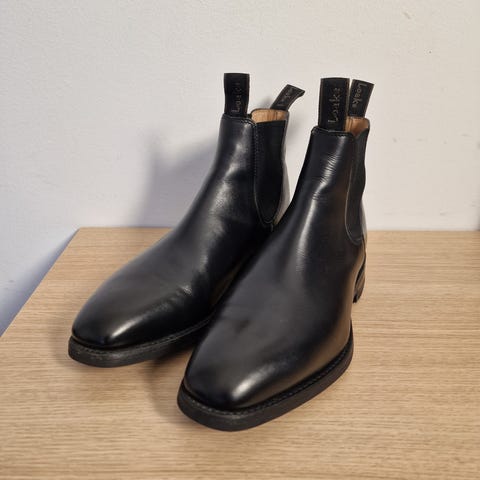 Vain muutaman kerran jalassa olleet Loaken hienot mokkanahkaiset bootsit. Koko UK 9,5 F, vastaa eurokokoa 44. Olivat itselle hieman isot. Mukaan laatikko ja kiillotusliina.