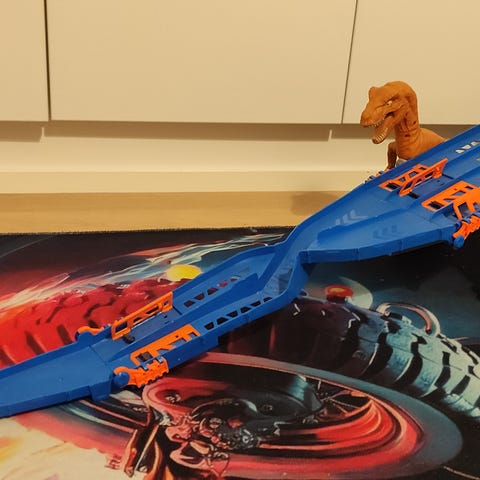 Metal Machines autorata. Pattereilla toimiva laukaisualusta. Kaksi autoa. Uudet patterit mukana.