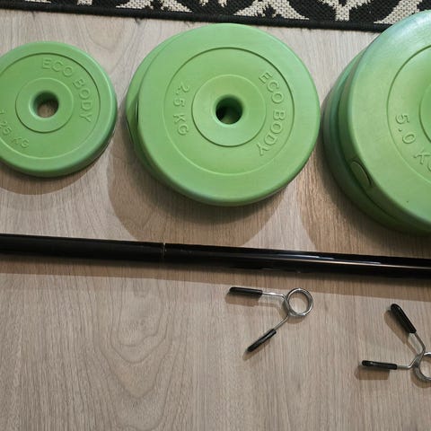 20 kg levytanko laakeroitu ja penkki